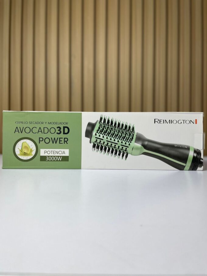 El cepillo secador REIMIOGTON Avocado 3D Power es un dispositivo eléctrico diseñado para el secado, alisado y modelado del cabello en una sola operación. Incorpora un cilindro de diseño ovalado con recubrimiento cerámico y cerdas mixtas, optimizado para cabellos húmedos y secos. Su sistema de ventilación distribuye aire caliente de manera uniforme, mientras que el motor interno trabaja en conjunto con un cable giratorio de 360° que mejora la maniobrabilidad durante el estilizado.