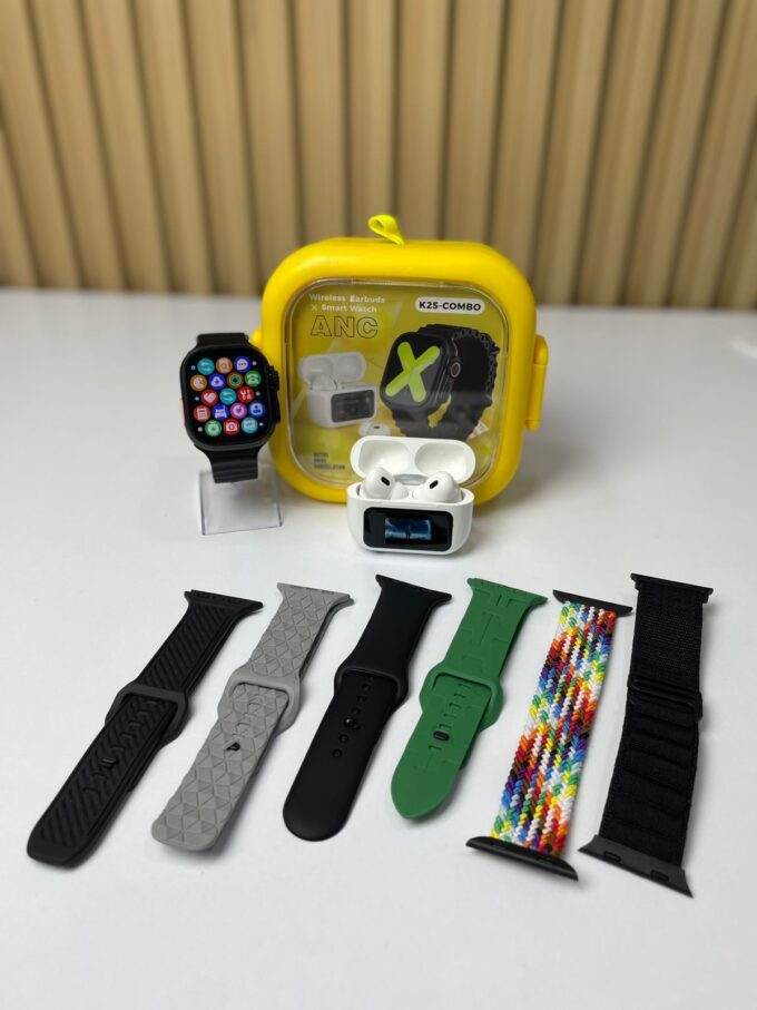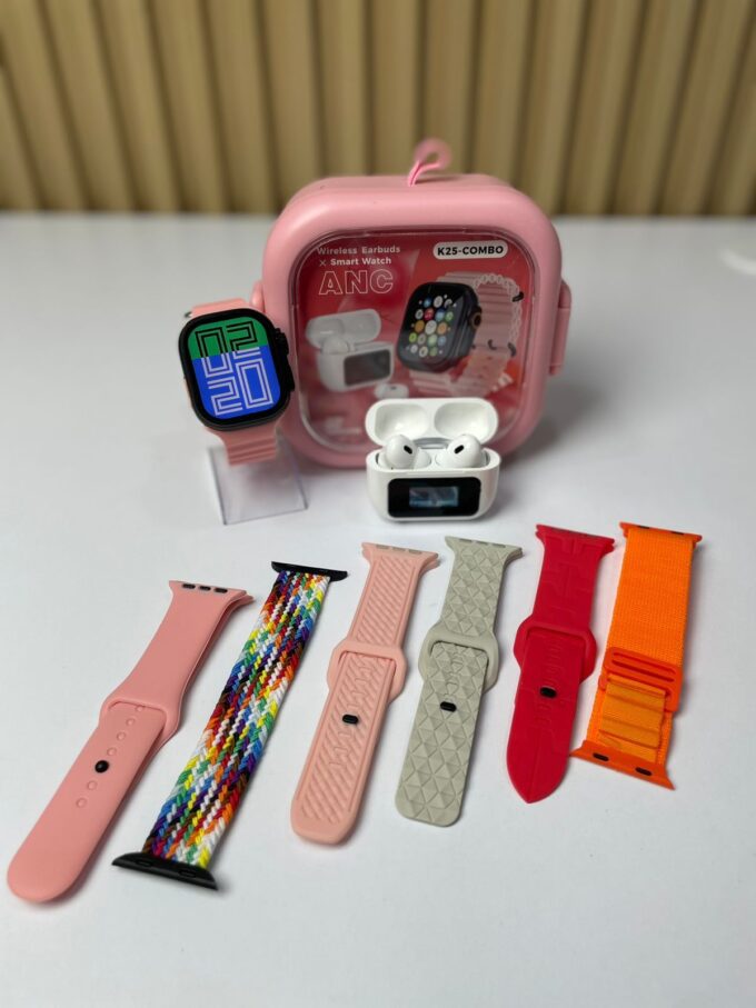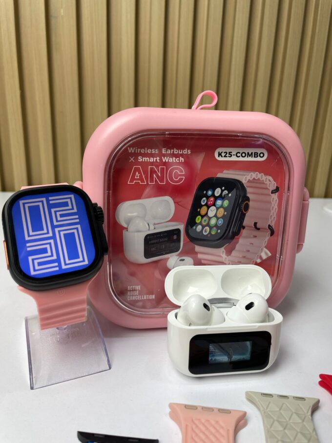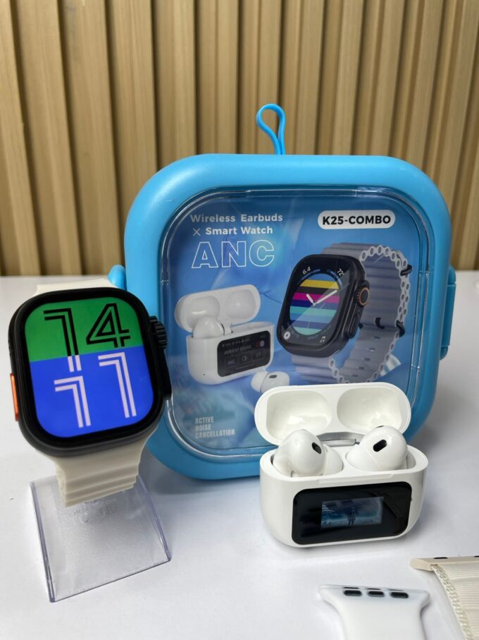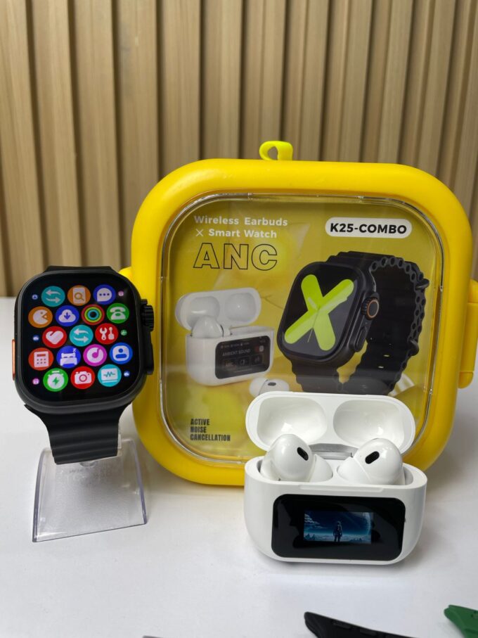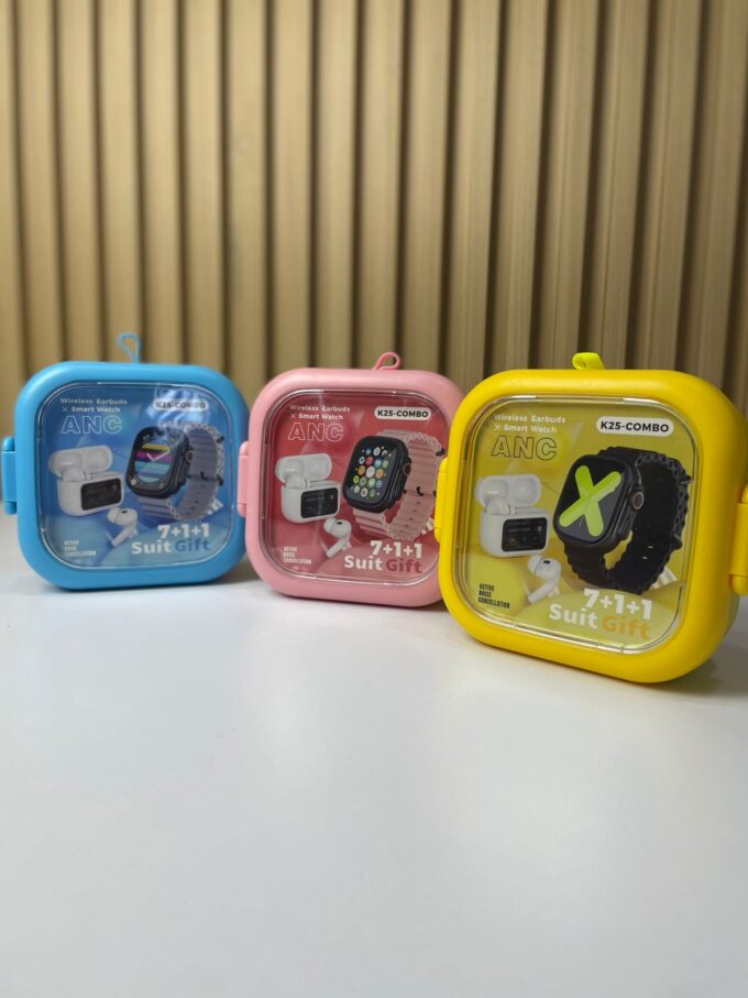 El K25-COMBO es un set de tecnología práctica que incluye un reloj inteligente multifuncional y unos audífonos inalámbricos. Está pensado para quienes desean estar conectados y disfrutar de su música con calidad, todo en un estuche rígido reutilizable disponible en colores azul, rosa y amarillo.