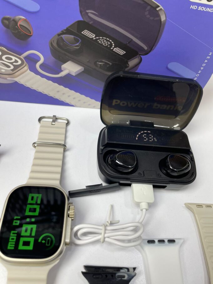 Tres funciones en un solo combo: reloj inteligente, audífonos y batería portátil.