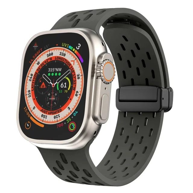 El Pulso Magnético 42/44/49 mm es una correa diseñada para relojes inteligentes compatibles con carcasas de 42 mm, 44 mm y 49 mm. Está concebida para proporcionar un ajuste firme mediante un sistema de cierre magnético continuo, permitiendo microajustes precisos en toda la circunferencia de la muñeca. Su construcción integra materiales resistentes a la abrasión y a la humedad, orientados a uso cotidiano y actividades de intensidad moderada.